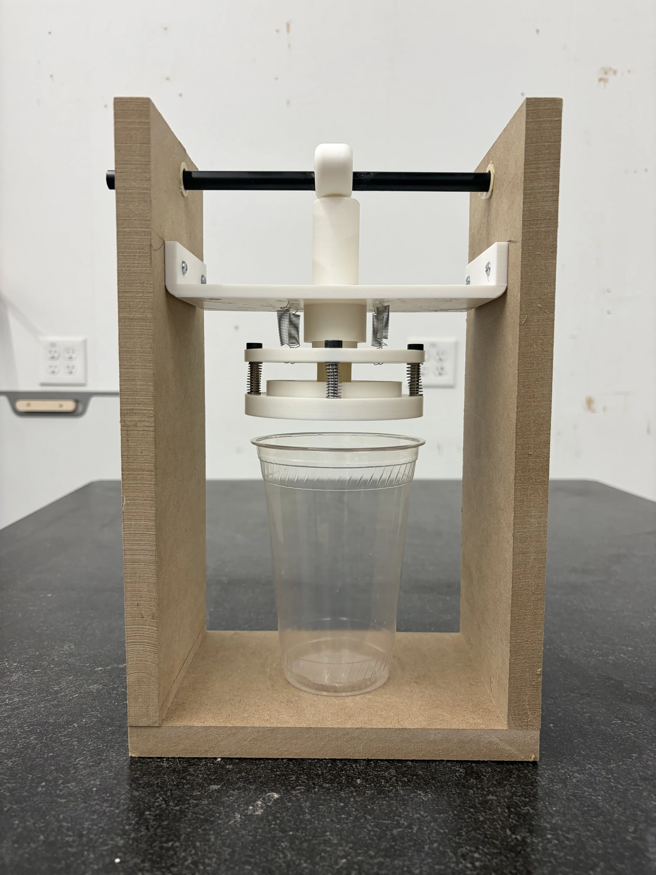 A home version with less cup volume should include a simple cam and follower mechanism to reduce complexity.