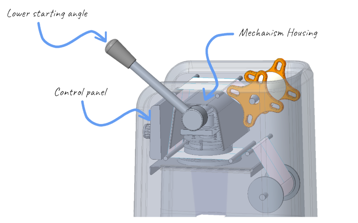 I started by modeling a simpler version of the machine to better understand the mechanism. From there I concepted the outer housing.
