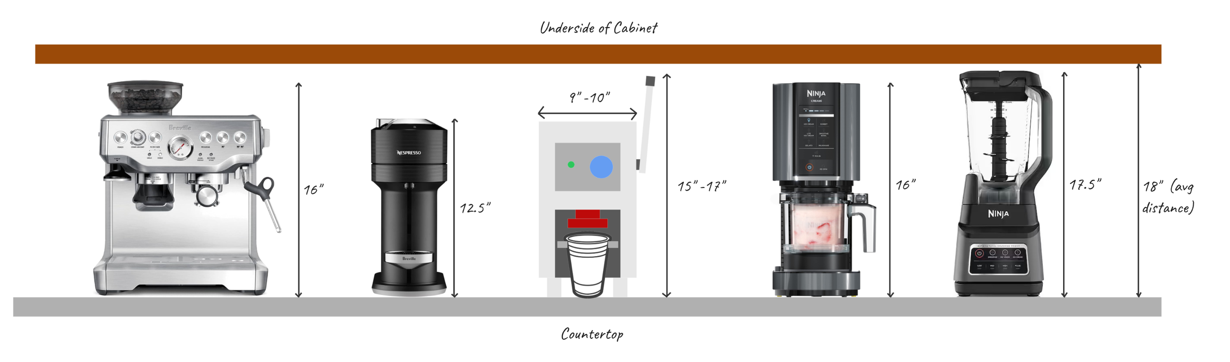 To fit under a standard kitchen cabinet, the total height needs to be less than about 18”. I wanted my machine to echo the design language of popular small kitchen appliance brands like Ninja, Breville, KitchenAid, and Cuisinart.