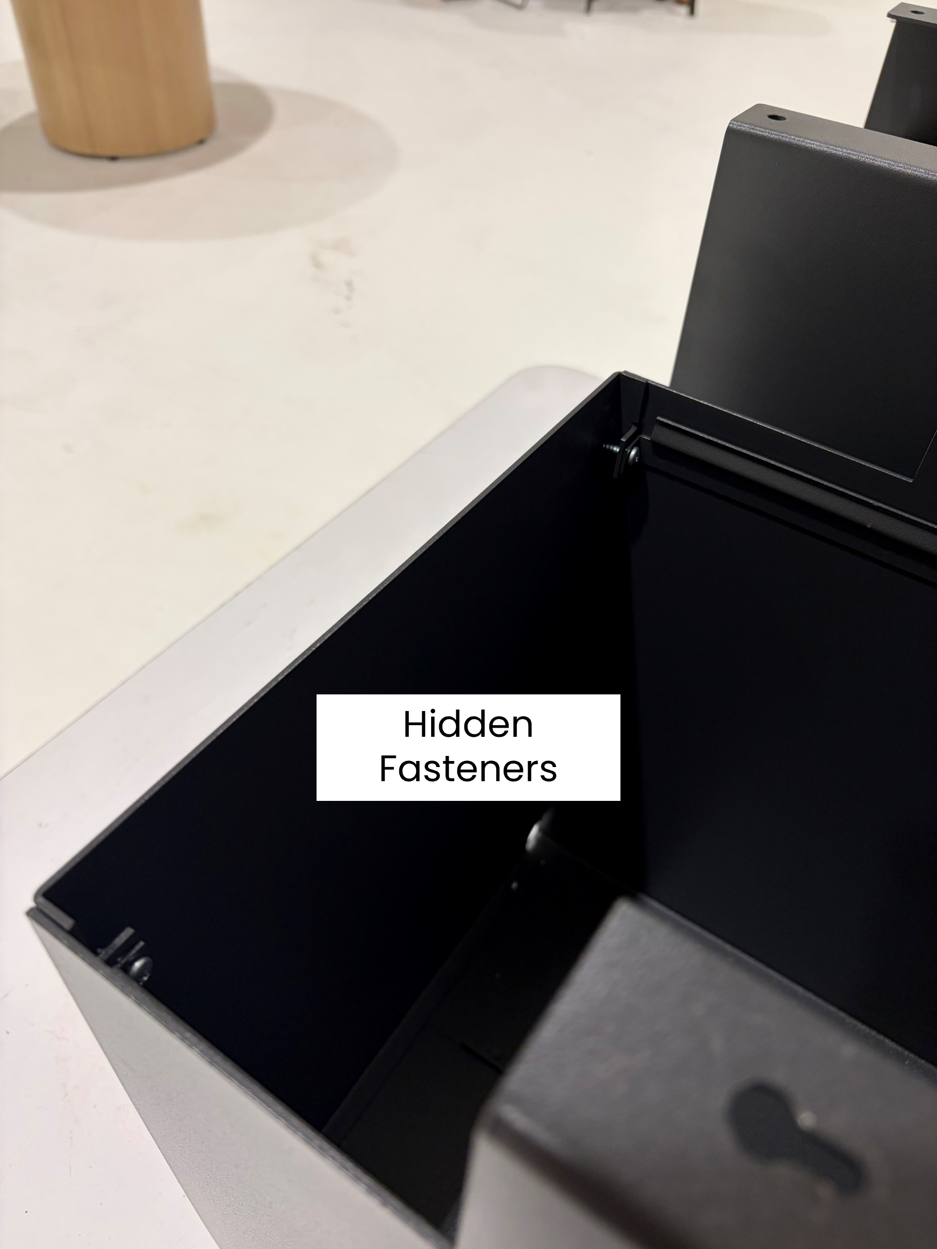 Since the transaction top flexes from 30” to 96” wide, I developed data-driven fastening logic to manage the increasing functional loads. I used free body diagrams and a custom moment calculator to determine the required screw counts, then combined these findings with Instron pull-out testing. I then performed physical prototype testing at worst-case conditions to finalize the engineering rules for the system.