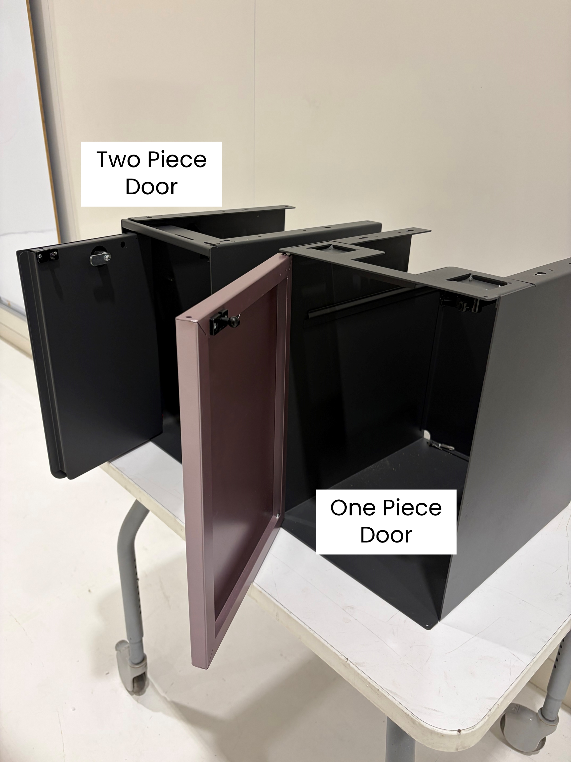 As part of an insourcing effort for the slim pedestal line, I re-engineered the base from four unique parts to two, achieving a 20% cost reduction through part commonality. I further expanded the portfolio by introducing two new configurations—a pencil drawer and a door-front version—to complement the original full-height drawer design.