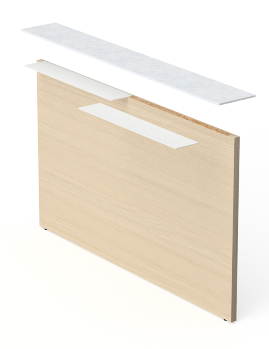I designed the support bracketry for a new premium wood panel system. These brackets accommodate both wood and customer-owned material (COM) transaction tops for administrative and reception applications.