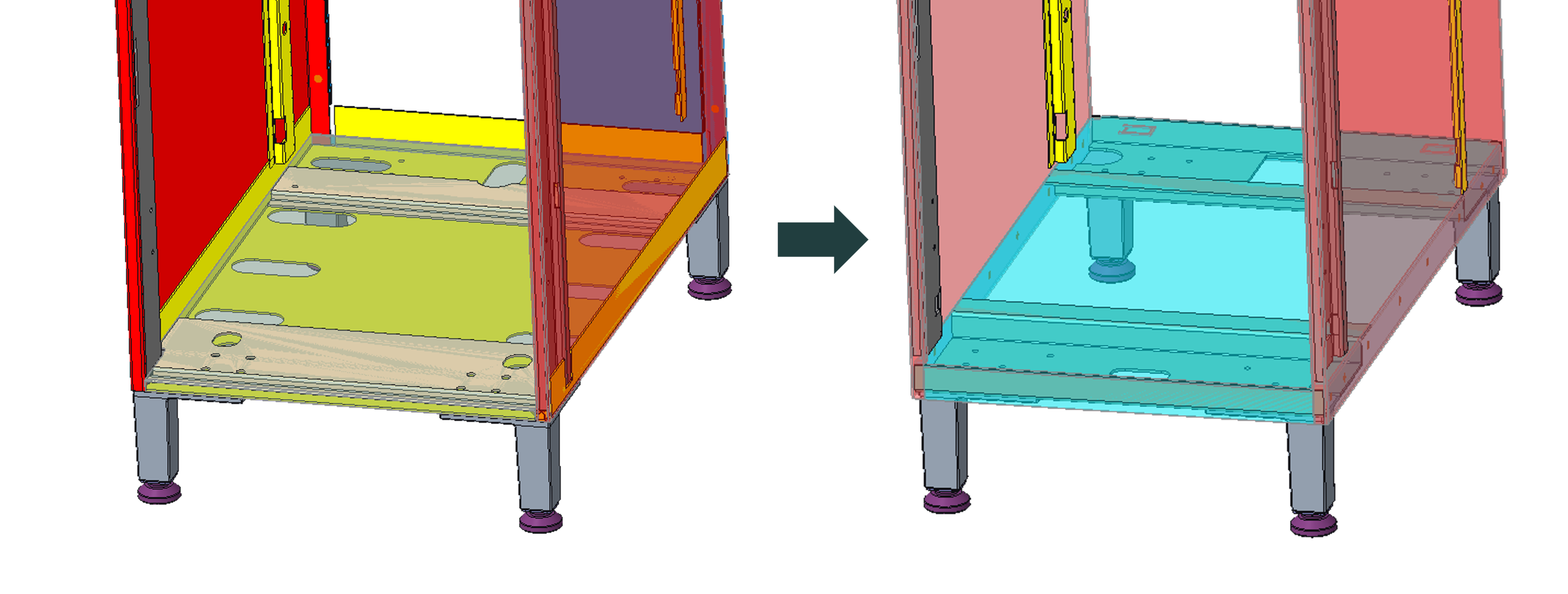 I reduced the number of unique steel parts for the base from 4 to 2, resulting in a 20% cost reduction.